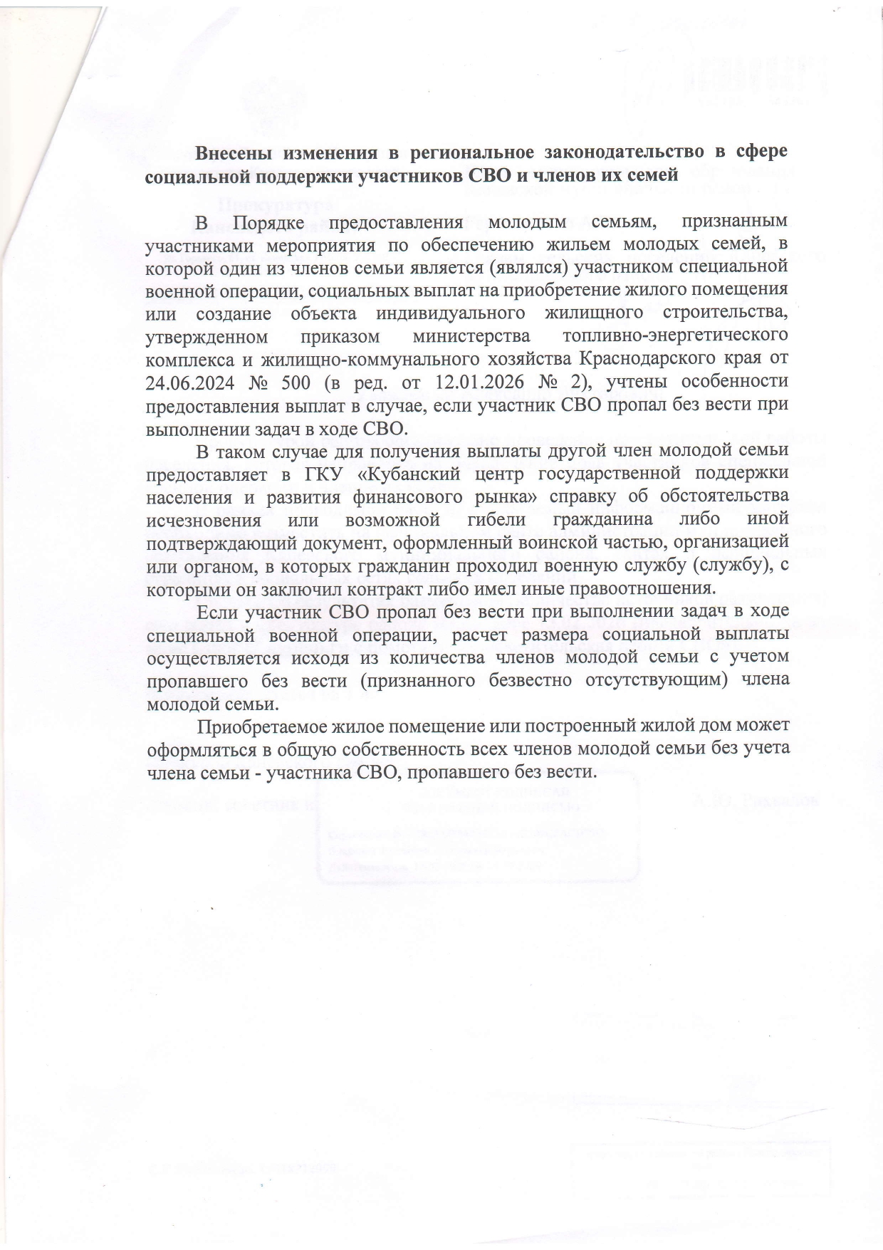 Внесены изменения в региональное законодательство в сфере социальной поддержки участников СВО и членов их семей