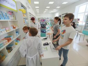 Клуб «Очаг» также посетил «Планету здоровья» — настоящую аптеку, где дети примерили роль юных фармацевтов. Им рассказали о медицинских профессиях и дали постоять за прилавком.